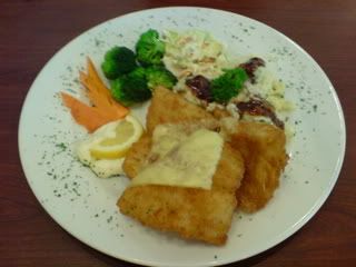 fish with cheese + rice. the serving was big reasonable. though not fantastic - it was good.