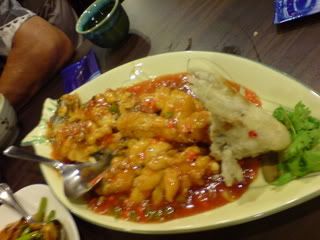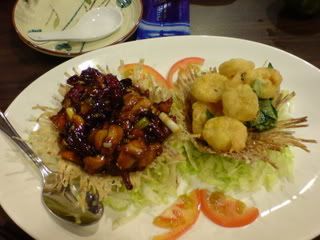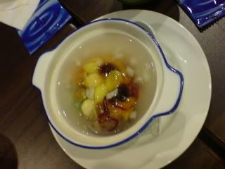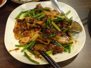 main dishes came pretty soon - dong po rou with asparagaus(i think) and sweet and sour fish. the sweet and sour fish was not bad. btw the fish bead was made to look like a squirral. freaky. lol. the dong po rou was oily but damn nice - i never liked asparagaus but i ate more asparagaus in one sitting today than i ever have had in my entire life.