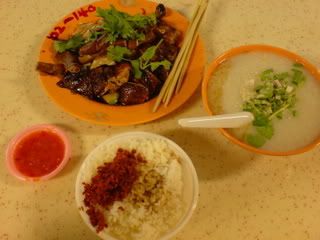 went chinatown for my duck rice and porriage again! i went with dad to eat! and i ate about 2 dumplings today - i don't usually eat them but i totally love those salty dumpings!! damn - this is bad because dumplings are quite fattening.. and i forgot to take picture. hee hee i shall eat another 2 tmr and take photo! HAHAHAHAHA. actually the dumpling stall is between the duck rice and vegetarian stall but they dun have zhao pai. more importantly, their dumplings are superb! seriously it's bursting with ingrediants. i heart their dumplings. =D