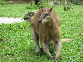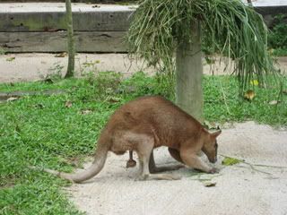 a kangaroo. my first time being so freaking close to one. all kangaroos are free to bounce around in the Australian Outback section but i didn't know. i totally freaked out when this kangaroo bounced past me. i should have touched it! damn.