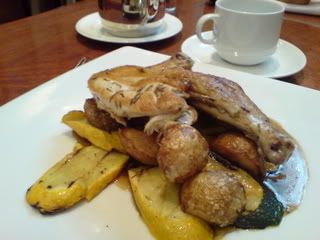 ended up having dinner at Marriot last week because of a seminar that the company was holding there. this is named rosemary marinated spring chicken. and it was from Marriot hotels' diner. sounds good right? and it was described as a healthy main course. but marinated my foot! it tastes so bland and knn it costs $24 ok!! it is like cheating people's money. why do i always end up ordering bland food! *grumble* *grumble*